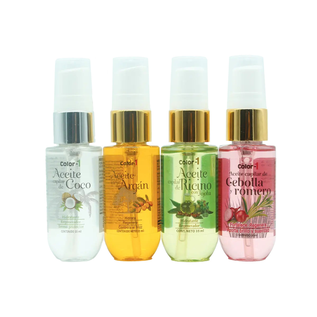 - Pon 3 o 4 gotas del aceite capilar en la palma de tu mano.