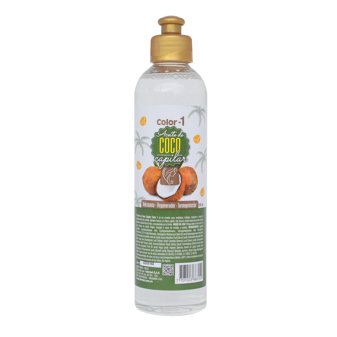 Los aceites capilares Color 1 cuentan con una fórmula premium para hidratar, regenerar y termoproteger tu cabello. Lo puedes aplicar en cualquier momento del día, ya que no dejan sensación de grasa. Los aceites capilares Color 1 están creados para todo tipo de cabello, y están disponibles en 3 variaciones: el aceite de cebolla sirve para fortalecer tu cabello, el aceite de argán le aporta brillo y suavidad y el aceite de coco lo nutre a profundidad.
